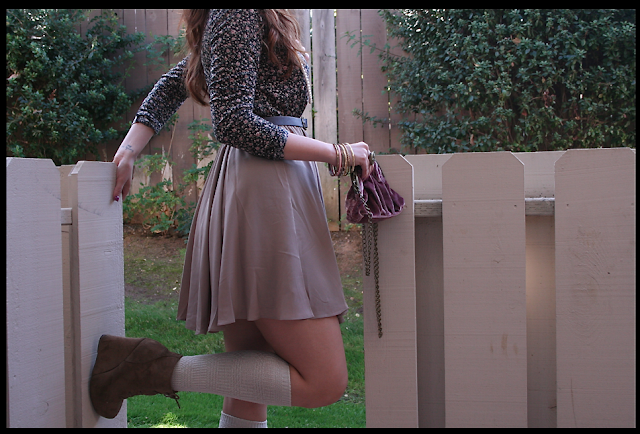 Today I'm wearing my fall dress.. like a sundress in shape but the long sleeves, neutrals and navy blue top make It perfect for fall. I paired It with knee highs tucked into some light brown booties, can't forget this plum velvet bag. I bought this as a classy small bag that I can take out with me cause after all I will be 21 in 2 days!! Every girl needs a small bag to take out to house their ID and money. :) I've been super busy with midterms and birthday planning that I don't have time to continue today but there will be a birthday post in a couple days. <3 xoxo